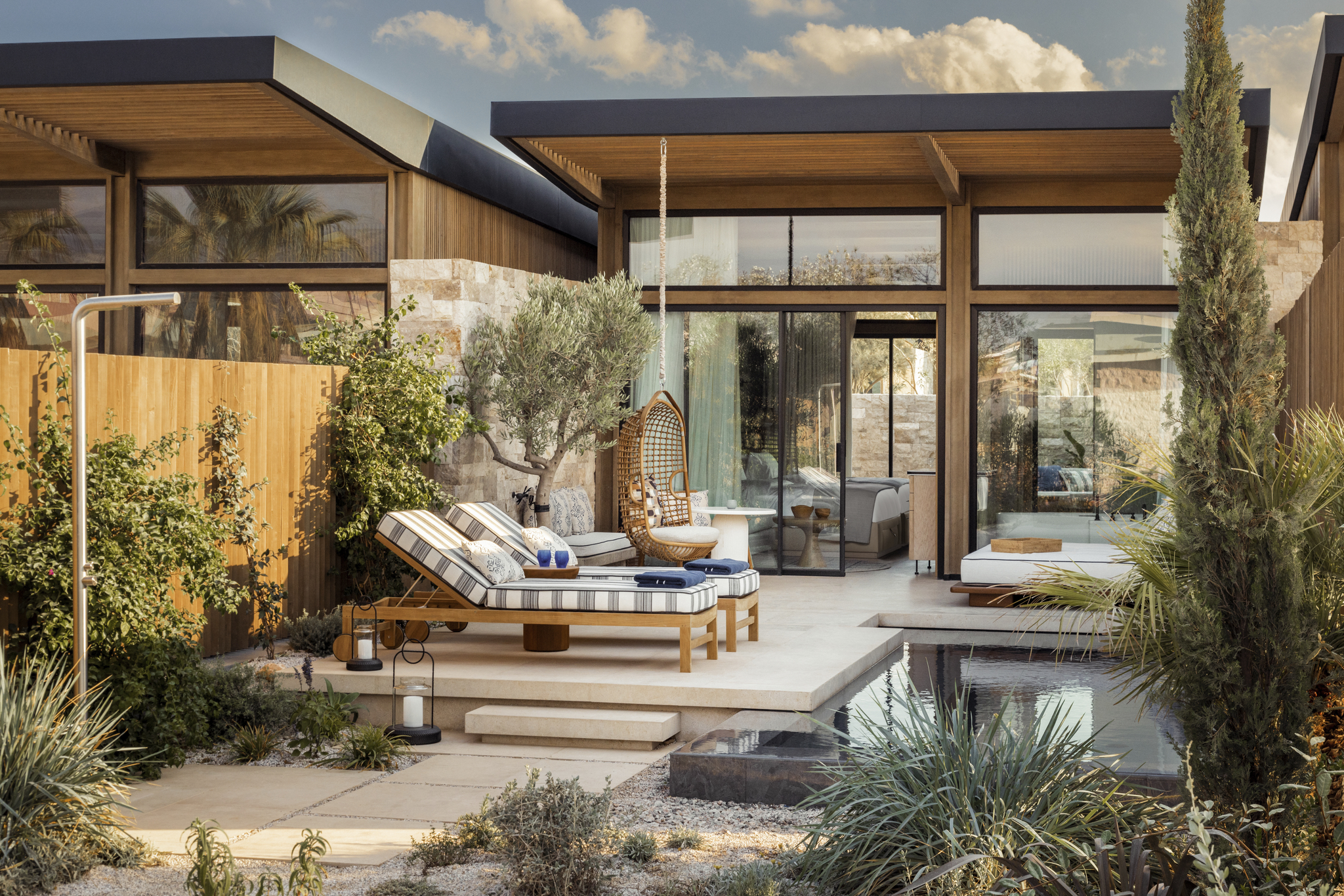 En fazla talep gören bungalovların bazıları denizin hemen kıyısında, bazıları ise biberiye, begonvil ve zeytin ağaçlarıyla çevrili bir ortamda yer alıyor. Gösterişten uzak ancak şık bir dekora sahip iç mekanlar, benzer tasarım unsurlarıyla donatılmış: devasa yatak, geniş bir küvet, yürüyüş dolabı, ahşap paneller ve tavandan tabana uzanan cam detaylarıyla dikkat çekiyor. Ancak bu alanları gerçekten özel kılan, açık hava yaşam alanları. Özel yüzme havuzu, bol miktarda şezlong, açık duş ve şömine gibi detaylar, her konaklamayı eşsiz bir boyuta taşıyor.